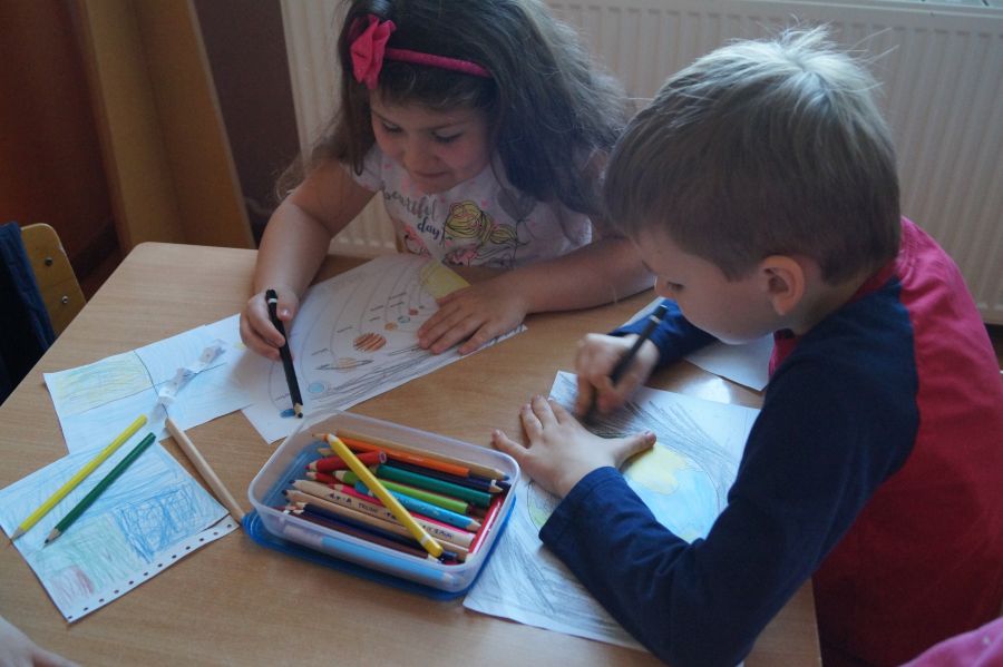 Kolorowy tydzień zakończył się zajęciami o układzie słonecznym oraz u starszaków wysadzeniem ostatnich ziarenek z tzw. zielonej fabryki. Soczewica zdążyła nawet wykiełkować co dzieci określiły mianem „cudu”:)