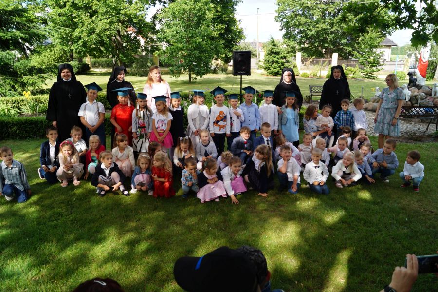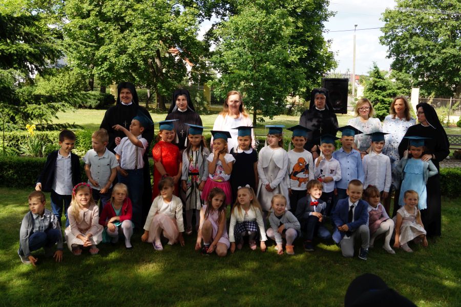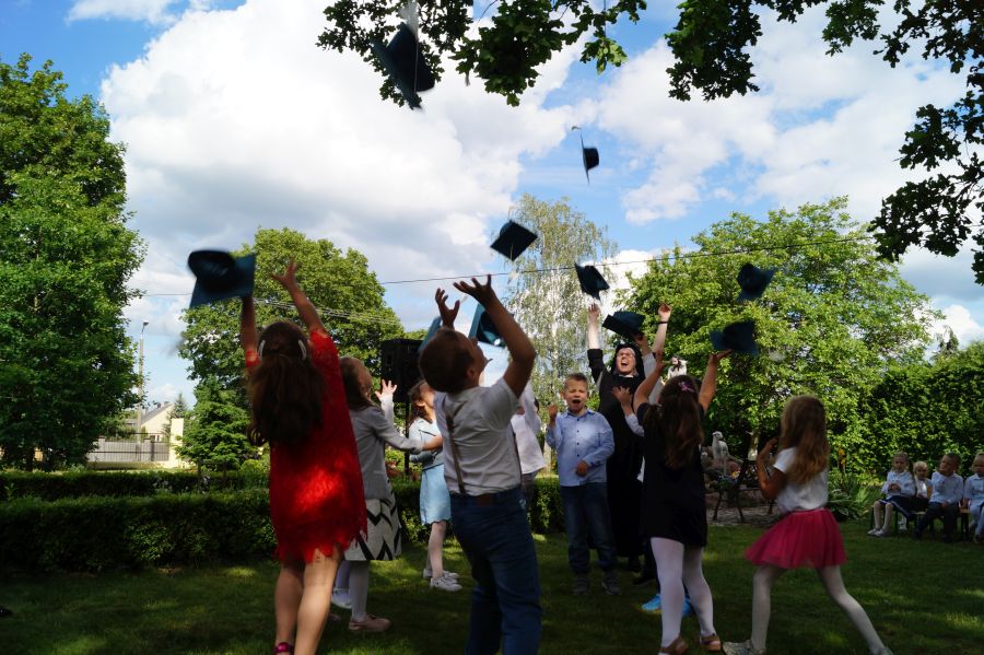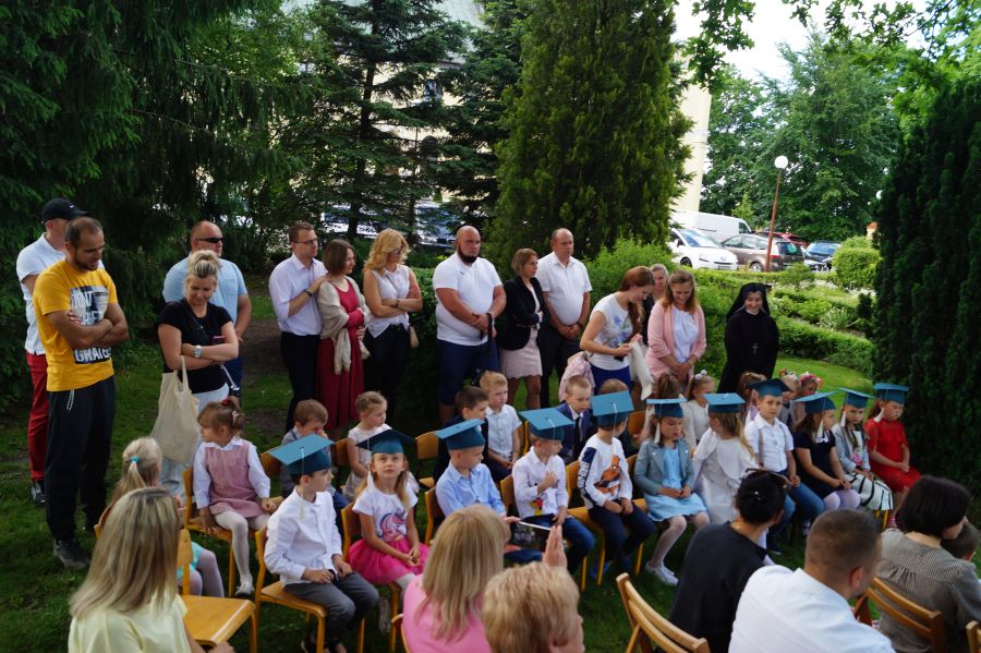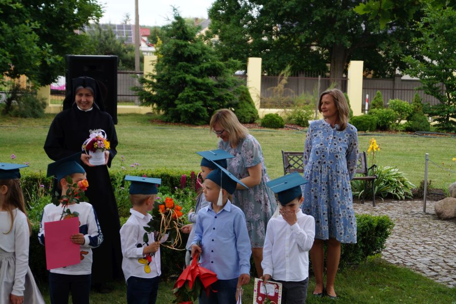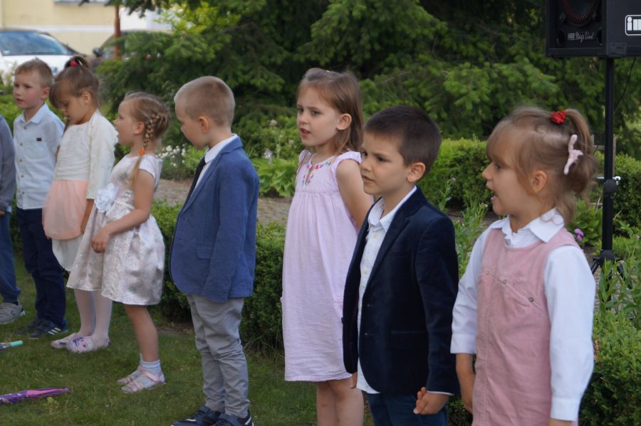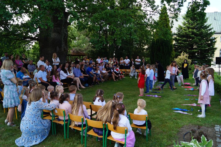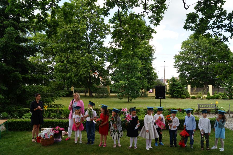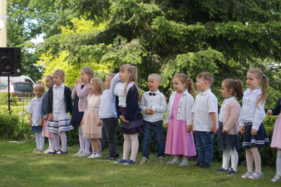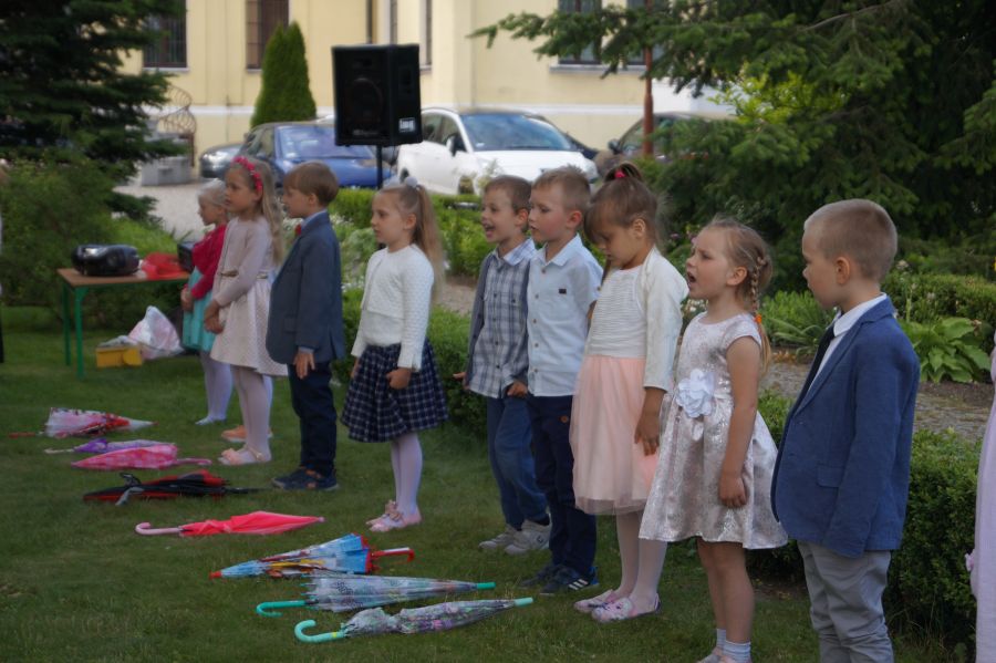 W tym roku nieco wcześniej niż zwykle odbyła się uroczystość zakończenia roku szkolnego. Dopisała nam piękna pogoda, wszystkie dzieci, małe i duże wspaniale tańczyły, śpiewały i recytowały wierszyki. W nie jednym oku zakręciła się łza, zwłaszcza u absolwentów i ich rodziców.  Dziękujemy wszystkim za wspólnie spędzony czas, już dzisiaj życzymy dobrego wakacyjnego wypoczynku.