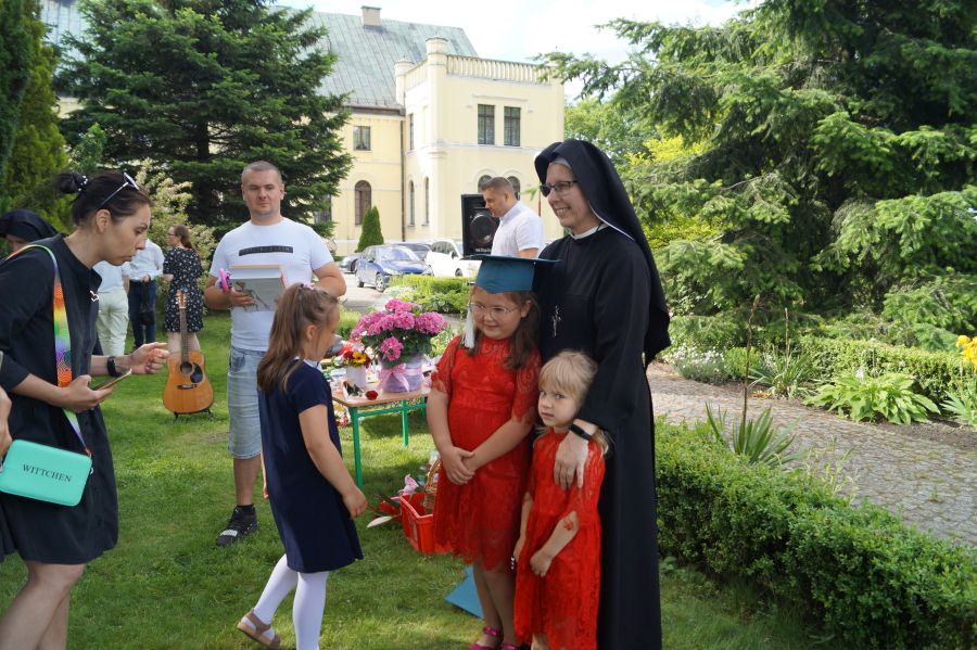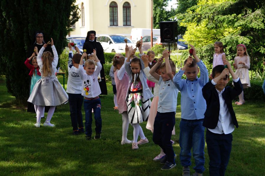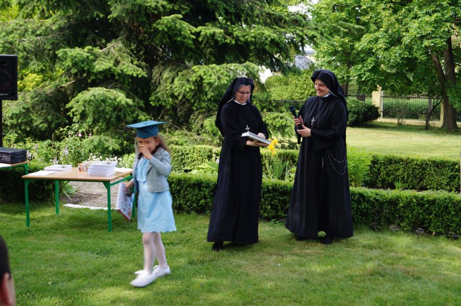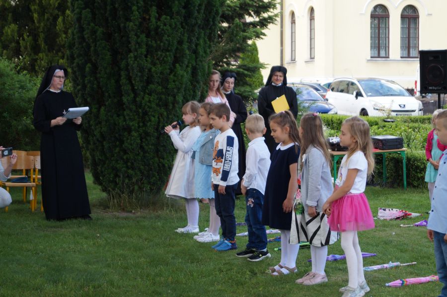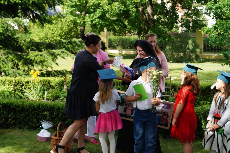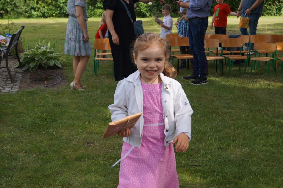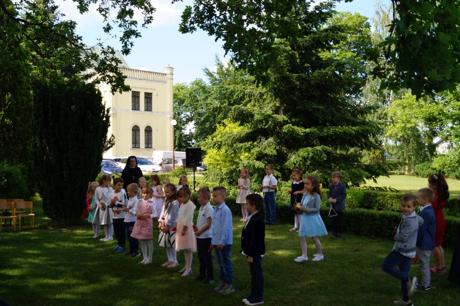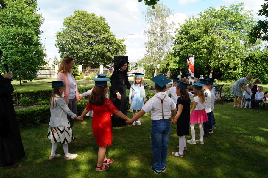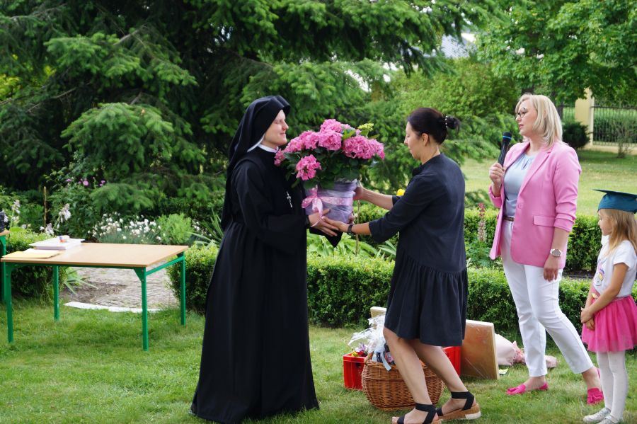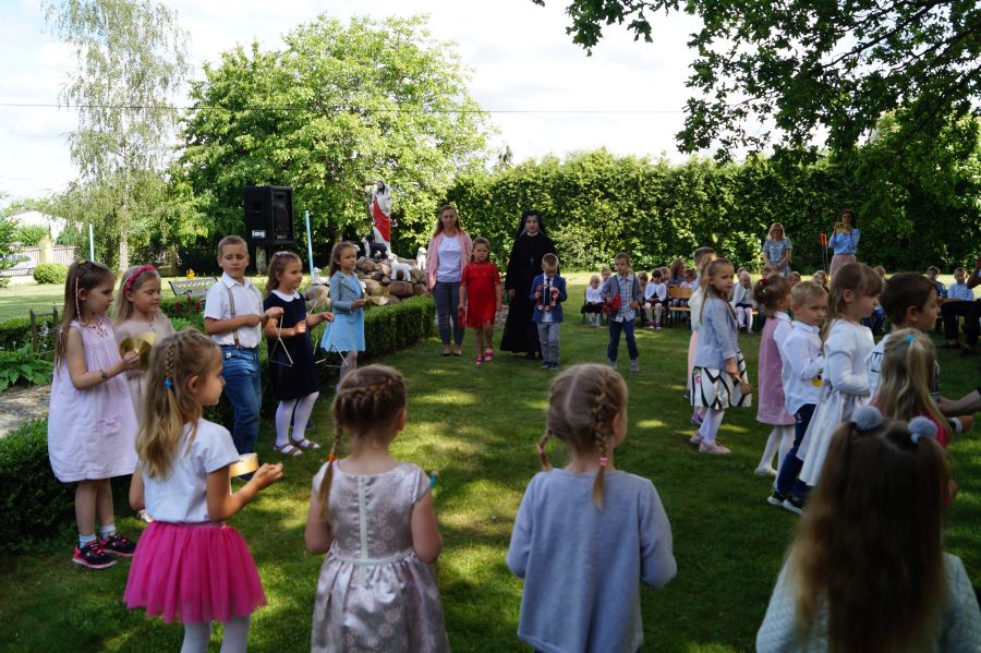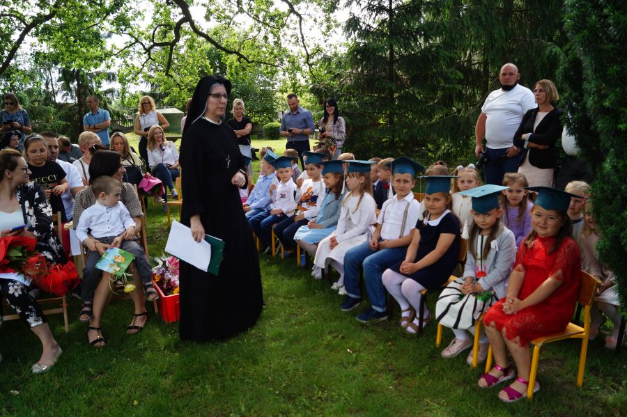 W tym roku nieco wcześniej niż zwykle odbyła się uroczystość zakończenia roku szkolnego. Dopisała nam piękna pogoda, wszystkie dzieci, małe i duże wspaniale tańczyły, śpiewały i recytowały wierszyki. W nie jednym oku zakręciła się łza, zwłaszcza u absolwentów i ich rodziców.  Dziękujemy wszystkim za wspólnie spędzony czas, już dzisiaj życzymy dobrego wakacyjnego wypoczynku.