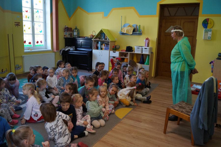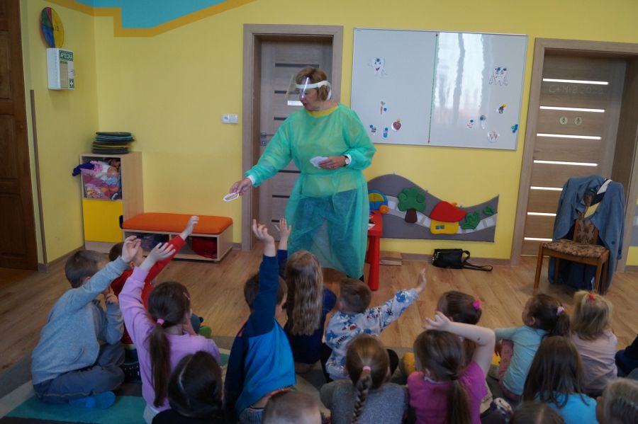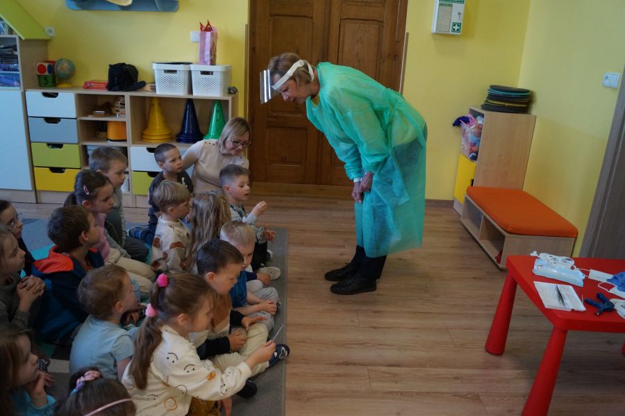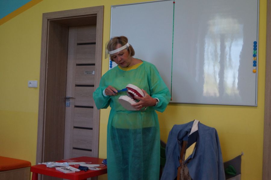 Realizując kolejne zadania z projektu „W zdrowym ciele, zdrowy duch” dzieci spotkały się ze znaną i lubianą panią stomatolog Renatą Gabrylewicz – Gorbaszewicz. Przedszkolacy byli bardzo aktywni podczas spotkania i ufamy, że już od dzisiaj nikt nie zapomni o myciu zębów 😉
