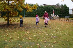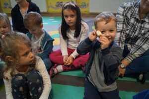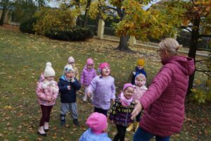W piątkowy poranek spotkaliśmy się z panią leśnik- Beatą Piesik z Nadleśnictwa Żołędowo. Dzieci miały okazję usłyszeć wiele ciekawostek na temat przygotowań zwierząt leśnych do zimy oraz dużo innych. Następnie grupa młodsza udałą się do ogrodu na zabawy outdoorowe.