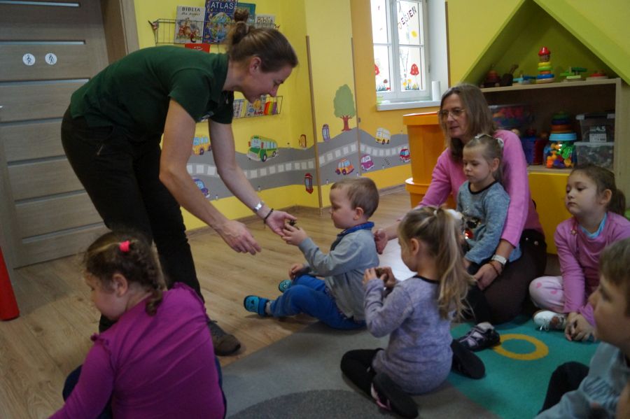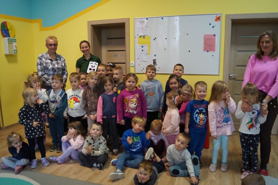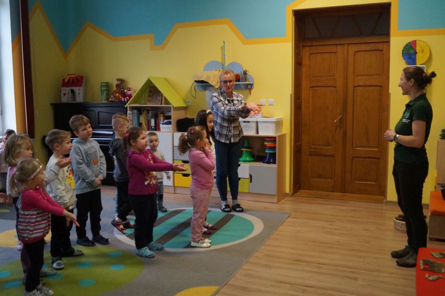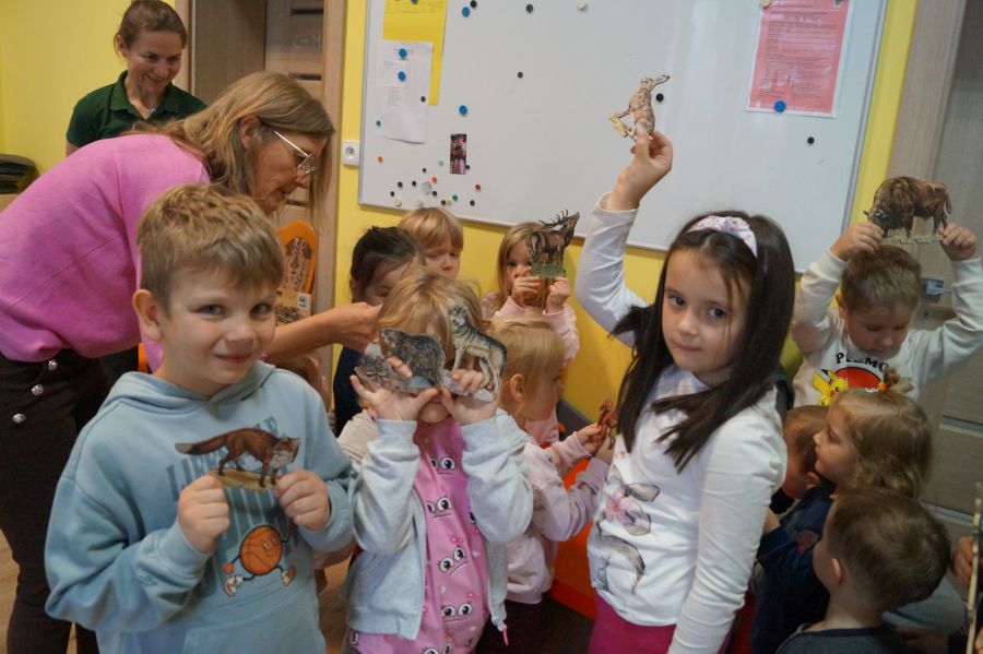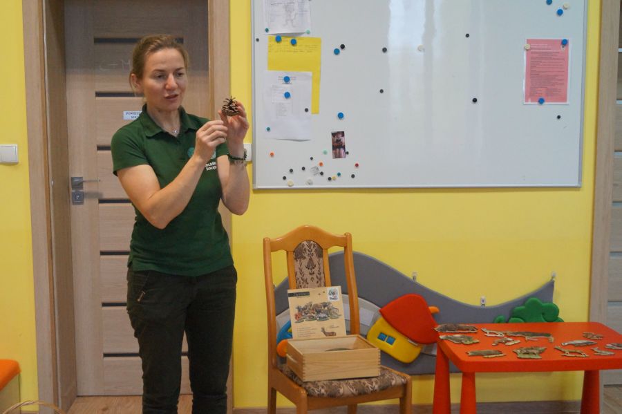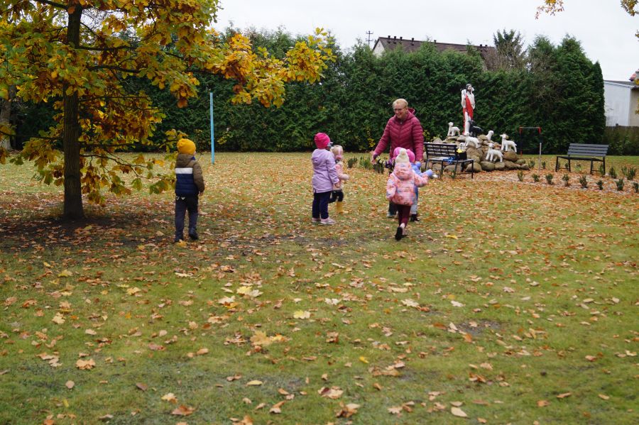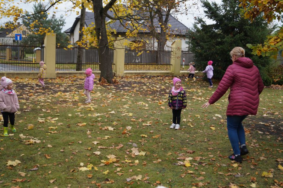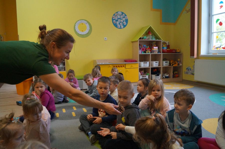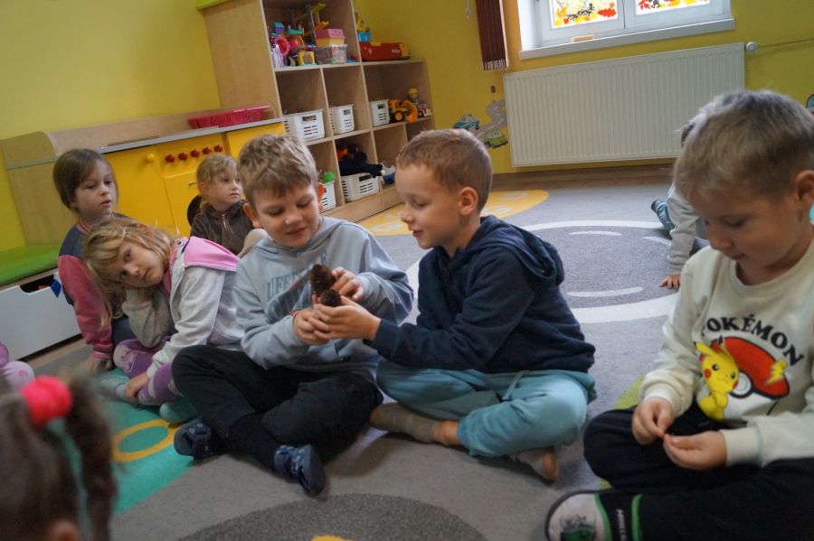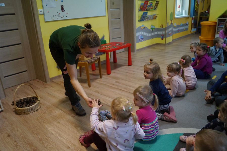 W piątkowy poranek spotkaliśmy się z panią leśnik- Beatą Piesik z Nadleśnictwa Żołędowo. Dzieci miały okazję usłyszeć wiele ciekawostek na temat przygotowań zwierząt leśnych do zimy oraz dużo innych. Następnie grupa młodsza udałą się do ogrodu na zabawy outdoorowe.