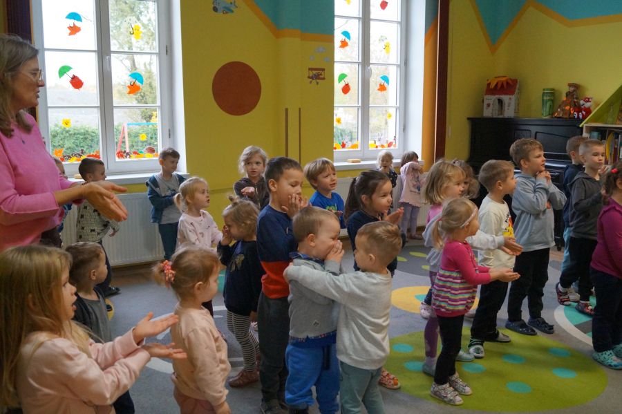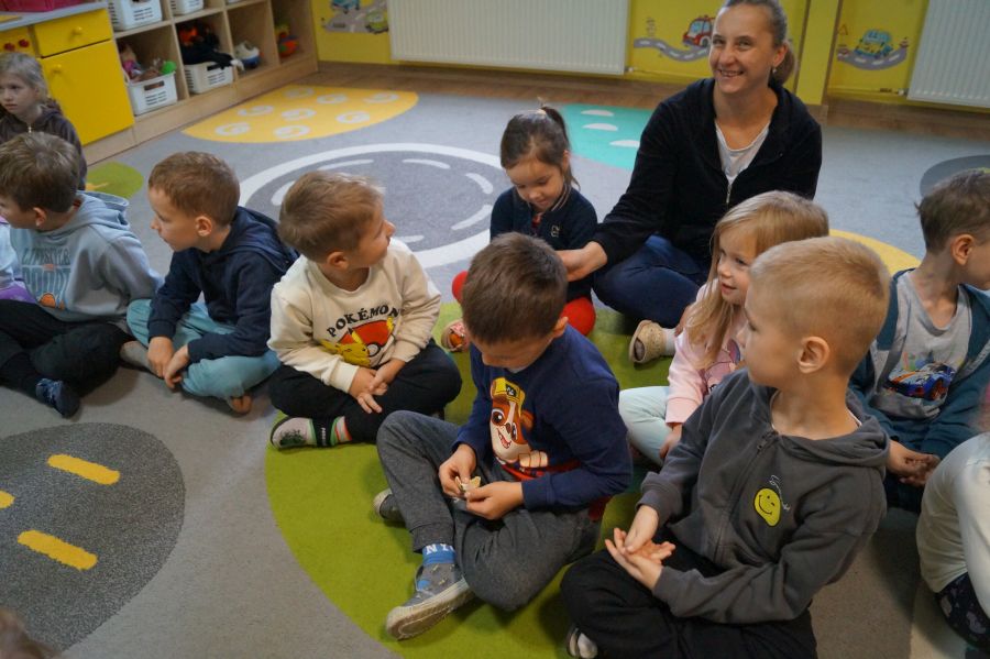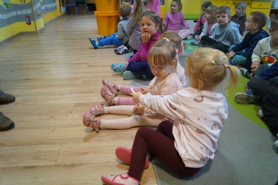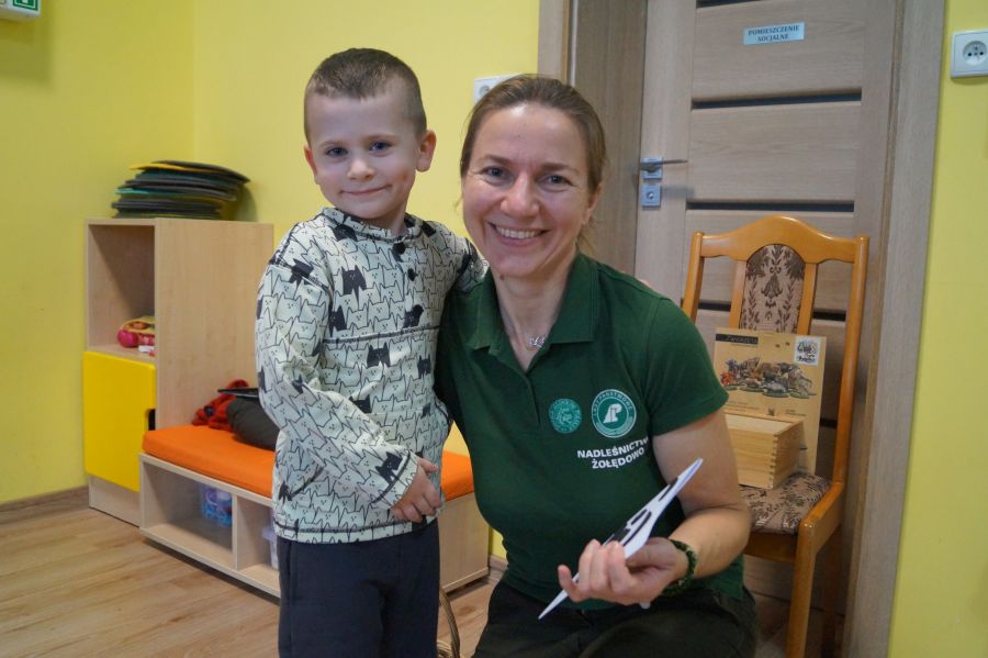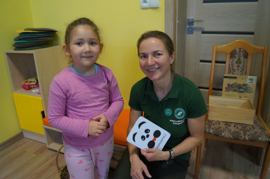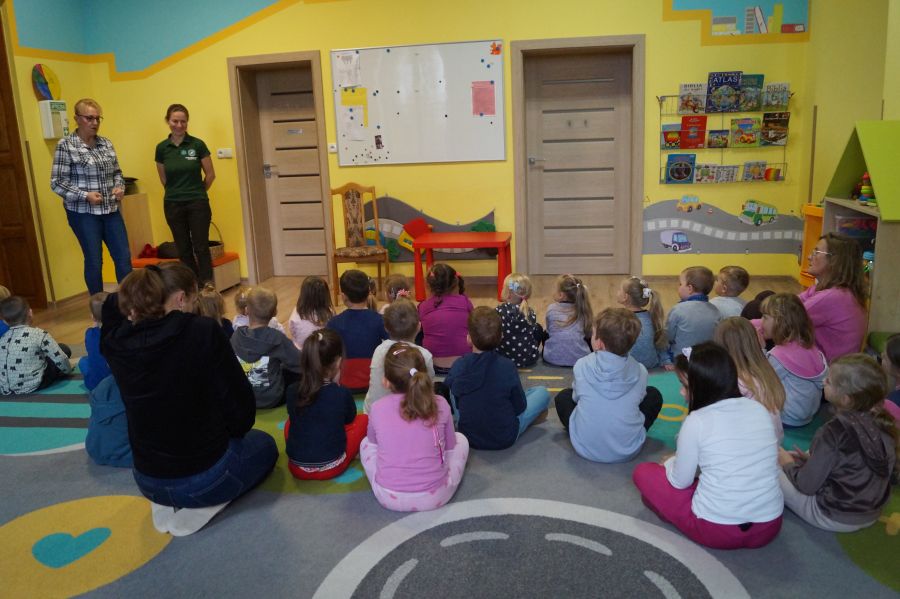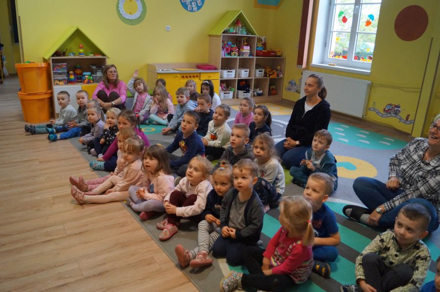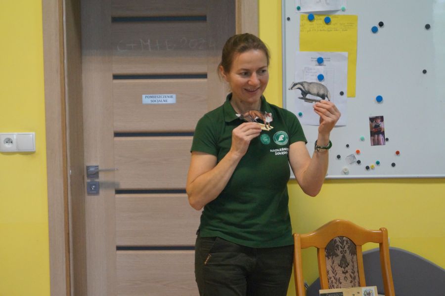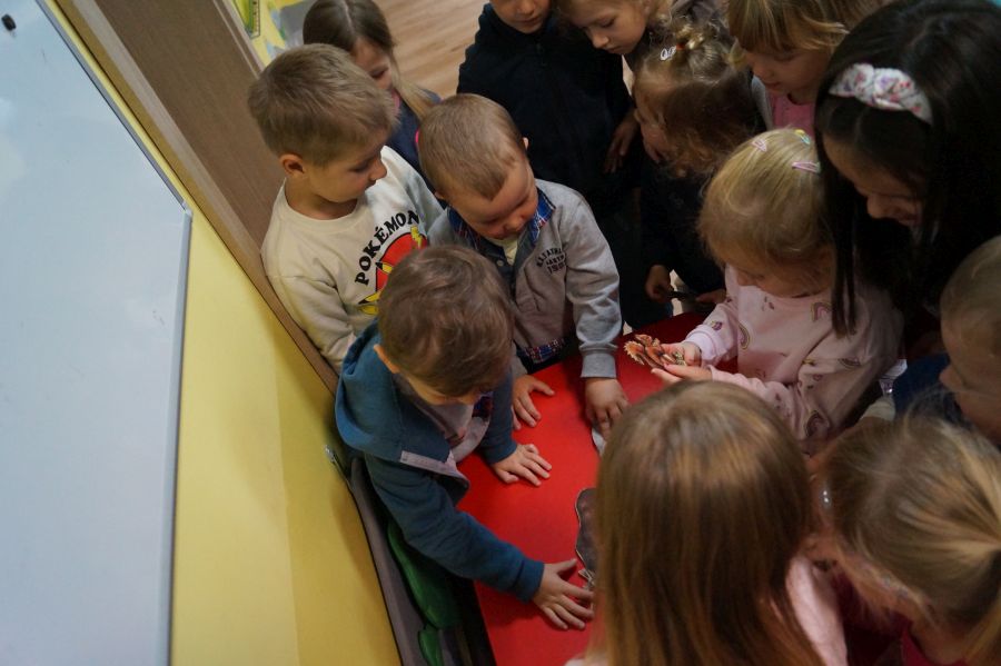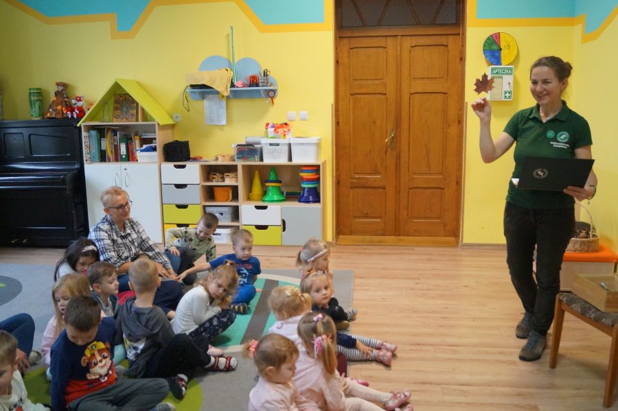 W piątkowy poranek spotkaliśmy się z panią leśnik- Beatą Piesik z Nadleśnictwa Żołędowo. Dzieci miały okazję usłyszeć wiele ciekawostek na temat przygotowań zwierząt leśnych do zimy oraz dużo innych. Następnie grupa młodsza udałą się do ogrodu na zabawy outdoorowe.